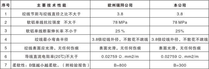 絞線節(jié)距很小,所以絞線柔軟性好。彎曲時結(jié)構(gòu)穩(wěn)定,不變形,不松股裂縫或跳線,表面光滑圓整,起暈電壓高,電磁波影響小。